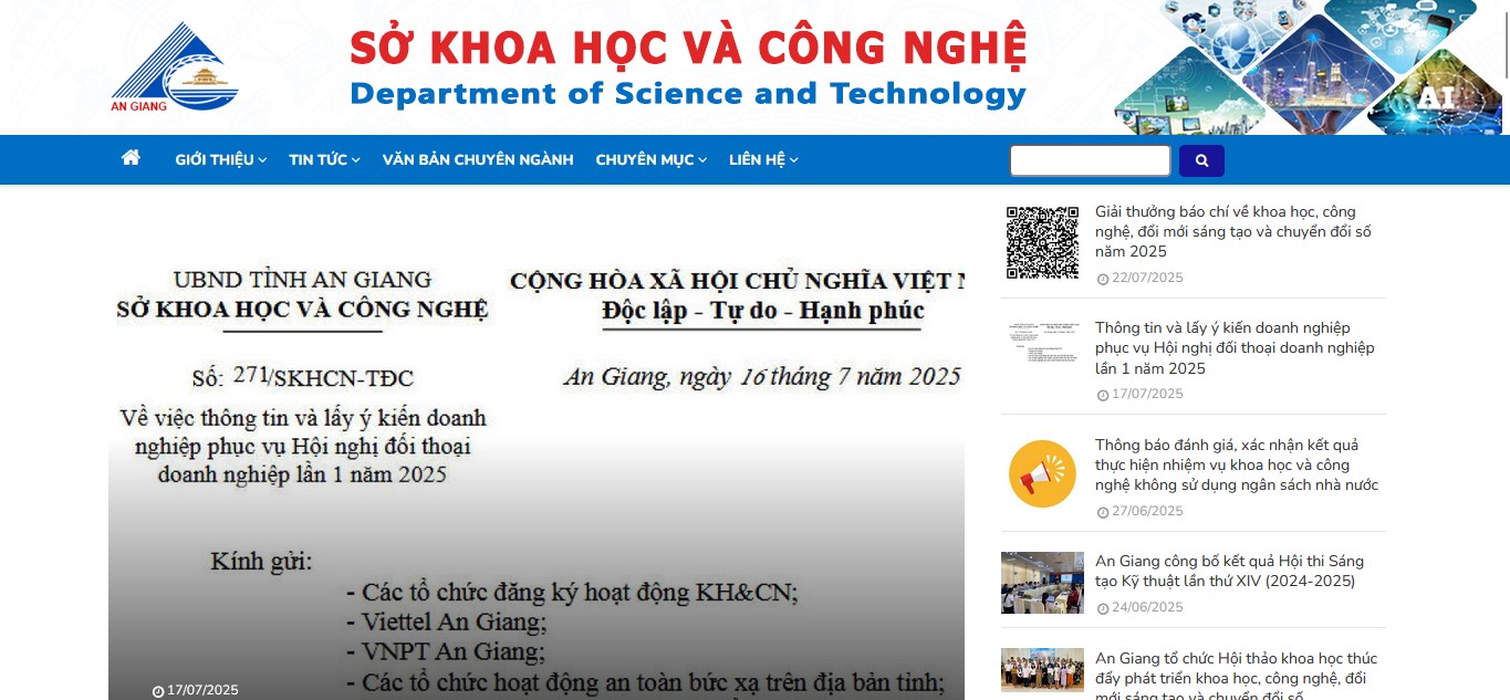 Trang Chủ TƯ VẤN, GIÁM SÁT, QUẢN LÝ DỰ ÁN Xem thêm Quản trị và vận hành kỹ thuật Xem thêm TIN TỨC - SỰ KIỆN Tài liệu hướng dẫn sử dụng trang TTĐT 22/12/2025 Khai mạc Hội nghị tập huấn phổ cập kỹ năng số cho giáo viên, học sinh tại An Giang 22/09/2025 THÔNG BÁO 22/12/2025Tài liệu hướng dẫn sử dụng trang TTĐT 22/09/2025Khai mạc Hội nghị tập huấn phổ cập kỹ năng số cho giáo viên, học sinh tại An Giang TẦM NHÌN, SỨ MỆNH CỦA AGG-DXCENTER Đối với khách hàng Phục vụ tận tâm, cùng nhau phát triển Đối với Ngành Khoa học và Công nghệ Kế thừa và phát huy truyền thống Đối với Cộng đồng Đóng góp tích cực, hiệu quả và có trách nhiệm Đối với Chuyển đổi số An Giang Sứ mệnh tiên phong, phụng sự DỊCH VỤ Đào tạo - Tập huấn TƯ VẤN, GIÁM SÁT, QUẢN LÝ DỰ ÁN QUẢN TRỊ VÀ VẬN HÀNH KỸ THUẬT THIẾT KẾ VÀ XÂY DỰNG CÁC SẢN PHẨM CNTT DỰ ÁN ĐÃ TRIỂN KHAI Cổng TTĐT tỉnh An Giang Cổng TTĐT Sở Du lịch tỉnh An Giang Cổng TTĐT Ban Quản lý Khu kinh tế Phú Quốc Cổng TTĐT UBND xã Châu Phú Hệ thống thông tin quản lý điều hành cấp phường xã Hệ thống quản lý di sản văn hóa tỉnh An Giang HT QL đánh giá mức độ CĐS các cơ quan, địa phương T. An Giang Cổng TTĐT Sở KHCN Không gian số tỉnh An Giang TÀI LIỆU - TIỆN ÍCH Dịch vụ công trực tuyến Thương mại điện tử AI Thanh toán học phí TT Công an Y tế Nông nghiệp số Smart An Giang KHÁCH HÀNG TIÊU BIỂU NỀN TẢNG CÔNG NGHỆ